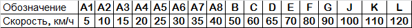 Индекс скорости - буквенный показатель (используются буквы латинского алфавита) максимальной скорости, на которую рассчитана шина. Для безопасной эксплуатации большинство специалистов не рекомендуют развивать скорость более 90% от максимальной предусмотренной.