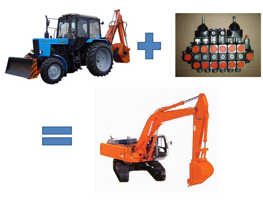 Экскаватор-погрузчик ЮМЗ (петушок) имеет гидравлическую систему модульного типа, которая состоит из следующих узлов: