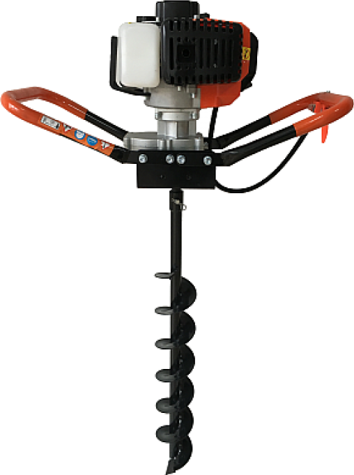На легкие мотобуры для земляных работ устанавливают двухтактные бензиновые моторы с воздушным охлаждением объемом от 42 до 71 см³.