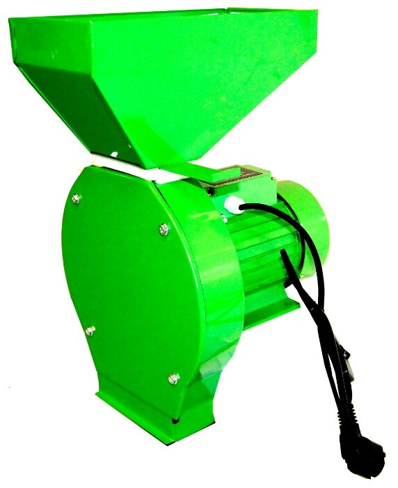Этот измельчитель грубых кормов способен справиться даже с отходами зерен и твердыми стеблями злаковых растений. Весит он около 8 кг, что позволяет устанавливать аппарат практически на любую ровную поверхность. Двигатель, мощностью в 1700 оборотом, дает возможность перерабатывать в час до 500 кг даже очень твердого зерна.