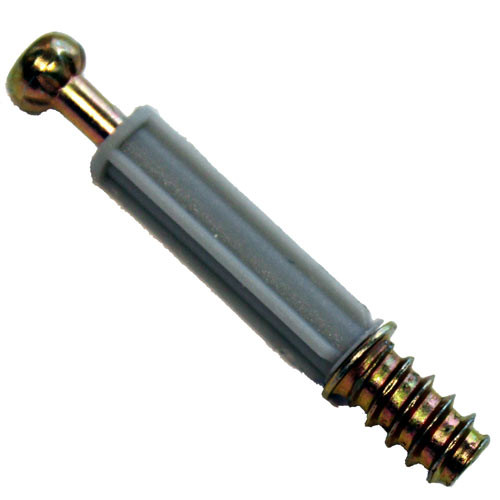 Одновременно с этим шток дюбеля смещается внутри пластикового корпуса, установленного в пласти соединяемой детали, распирая пластик. Таким образом происходит прочная фиксация деталей мебели между собой. Пластиковый корпус имеет установочные размеры 8х12 или 10х12 мм.