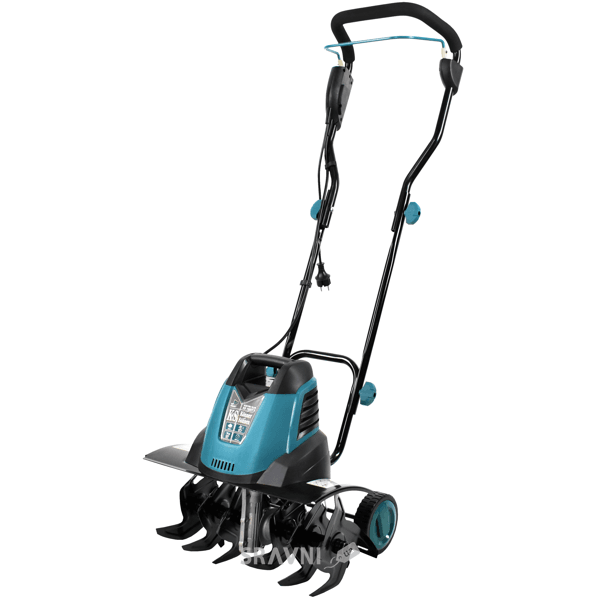 Данная модель техники также представляет собой электрический агрегат мощностью 2000 Вт. Использовать технику можно на небольшом садовом участке, осуществляя рыхление почвы. Почву с помощью этого приспособления можно смешивать с внесенными удобрениями.