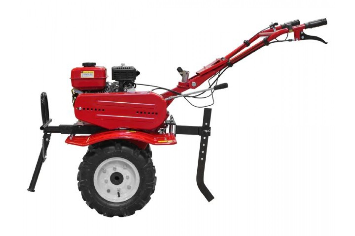 Модель является самой мощной во всей линейке. С её помощью можно обрабатывать даже целину размером до пяти гектар. Глубокий протектор на колёсах делает мотоблок проходимым по любому типу грунта.