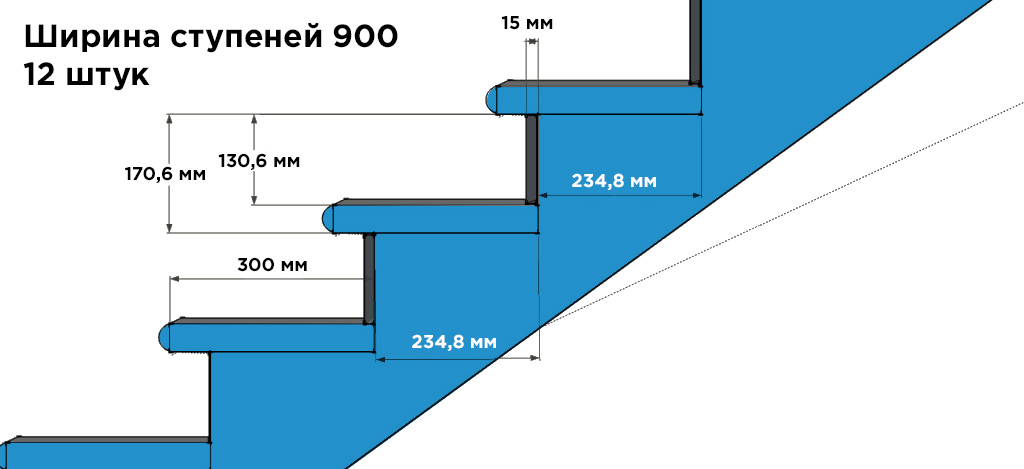 - Ширина проступи находится в пределах от 200 до 320 мм, чтобы помещалась стопа человека.