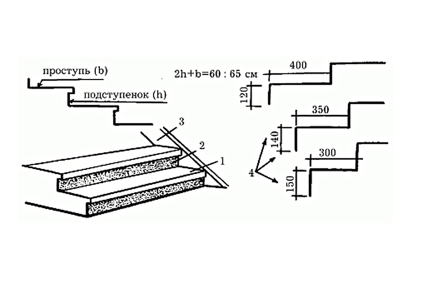 - Если сложить размеры двух подступенков и одной проступи, то это значение должно соответствовать среднему значению шага, равному 60-65 см.