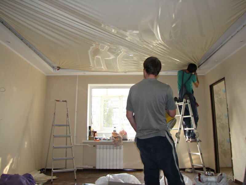 Инструкция как натянуть своими руками натяжной потолок в квартире: фото, видео