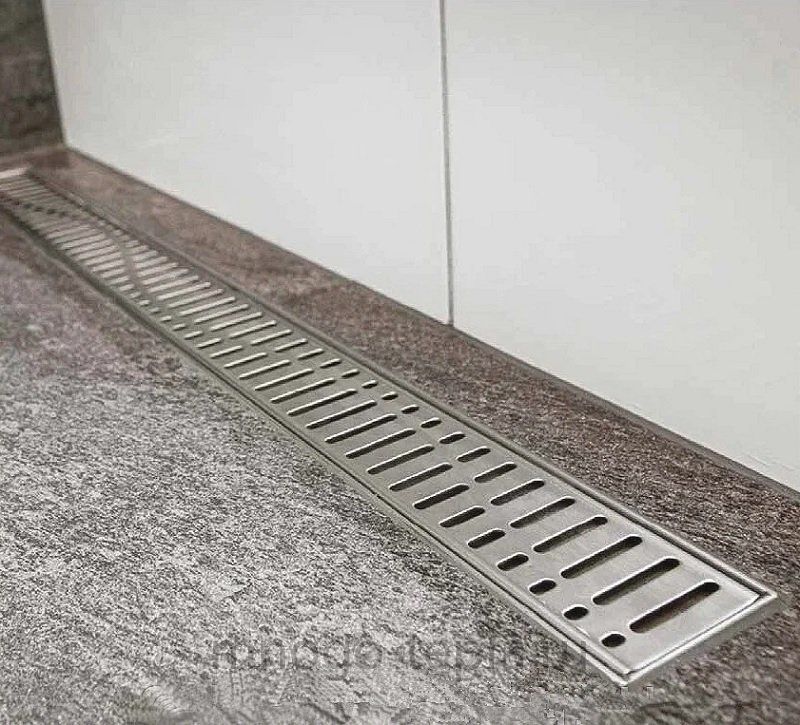 Они могут располагаться посередине пола, но чаще всего располагаются вдоль одной из стен душевой. Расположение линейных желобов означает, что t весь пол душа равномерно наклонен к желобу . Прямые трапы бывают разных размеров, вплоть до 72″.
