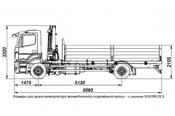 Размер обода 9,00-22,5 Тип колес дисковые Тип шин радиальные, бескамерные Шины 315/80 R22,5 - Система питания
