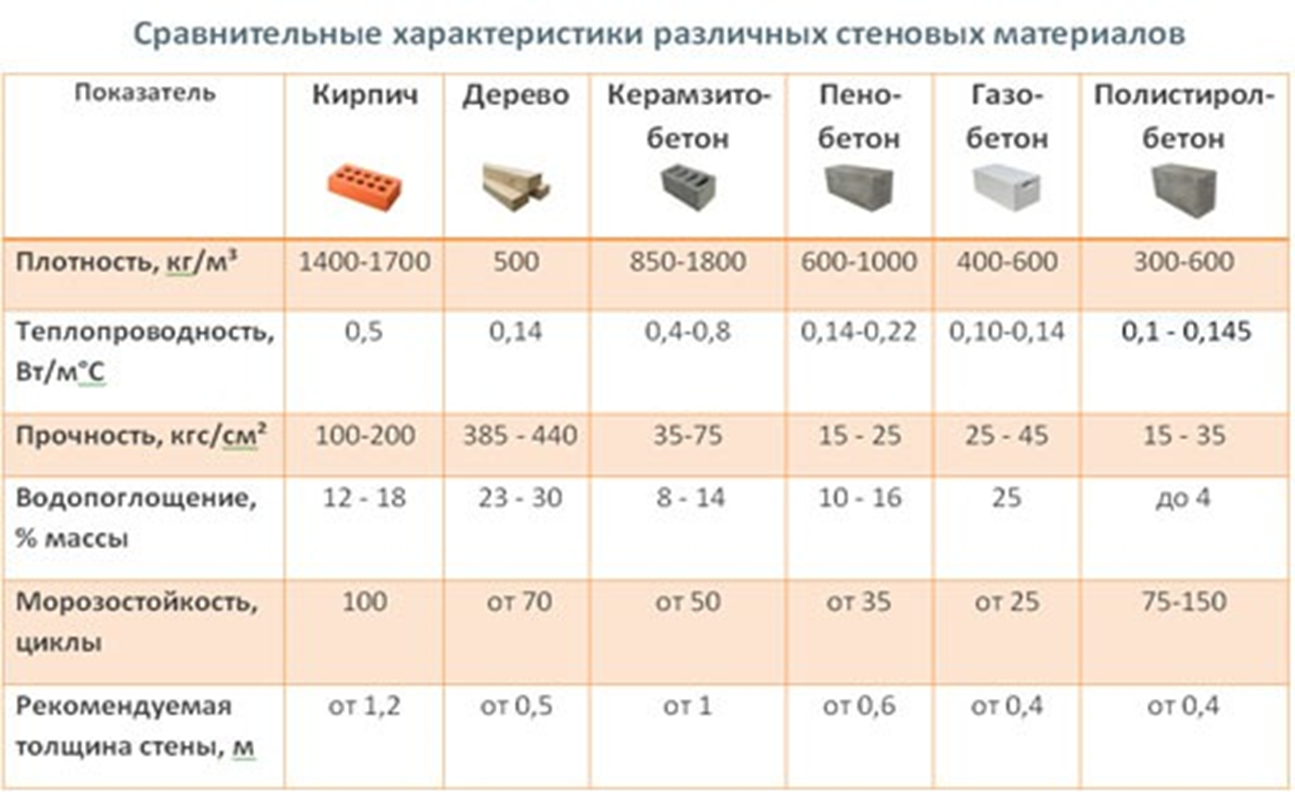 Показатели теплопроводности строительных материалов