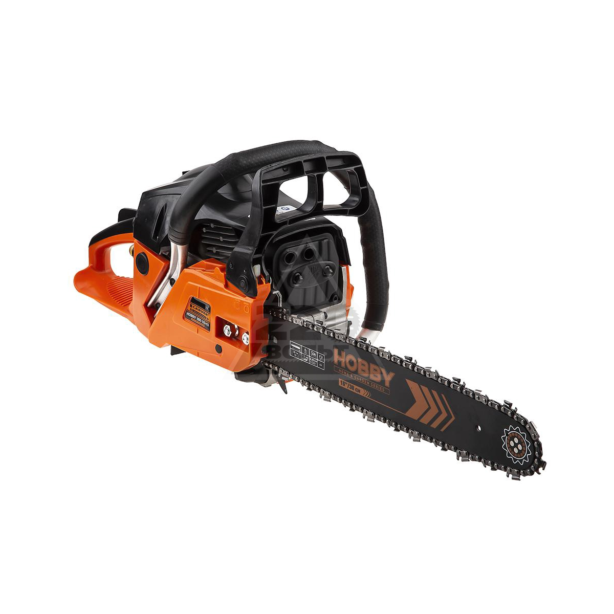 Бензопила HUTER BS-45M – бюджетная, но очень надежная. В рейтинг она попала не случайно – модель пользуется большой популярностью. И хотя уже упомянутым пилам она сильно уступает в весе (с шиной и цепью 7 кг), технически она имеет похожие характеристики. Мощность двигателя 2.3 л.с., комплектуется шиной 40 см.