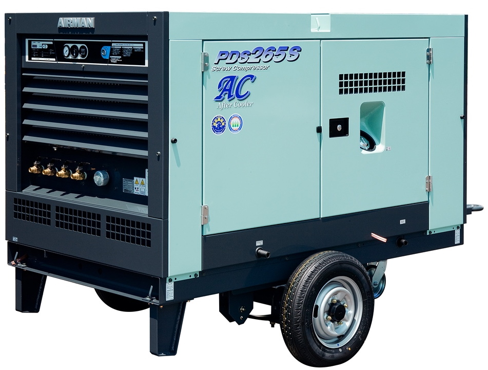 Производительность 6 м3/мин, давление 7 атм, в закрытом исполнении на колесах.