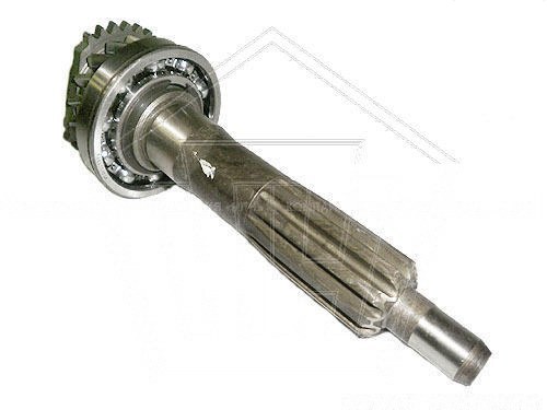 Промежуточный вал передним концом опирается на роликоподшипник, установленный в передней стенке картера, а задним — на сферический роликоподшипник, размещенный в задней стенке картера. Передний конец промежуточного вала коробки передач имеет шлицы для соединения с промежуточным валом делителя. Шестерни передачи заднего хода, первой второй передач изготовлены заодно с промежуточным валом, а шестерня третьей передачи и зубчатые колеса соответственно четвертой передачи и привода промежуточного вала напрессованы на вал и зафиксированы сегментными шпонками.