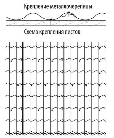 Теперь о том, какова вкратце последовательная схема крепления металлочерепицы.