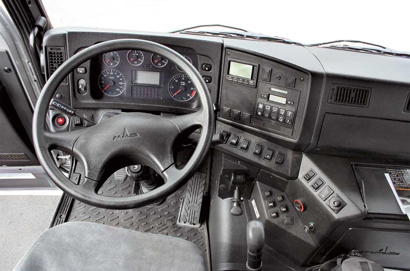 Детали интерьера кабины МАЗ выполняют эстетическую функцию. Облицовка скрывает радиаторы и другие системы.