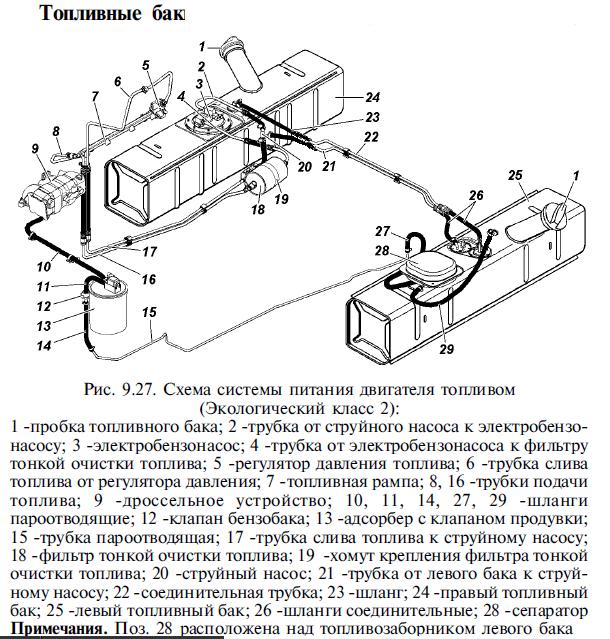 Они предназначены для слива топлива при необходимости, отстоя, воды и мусора. Пробки бензиновых баков уплотняются резиновыми либо металлизированными прокладками. Тело каждого резервуара сварено со стальных штампованных половин и торцевых стенок. Внутри на нижней и верхней стенке расположены вспомогательные элементы.