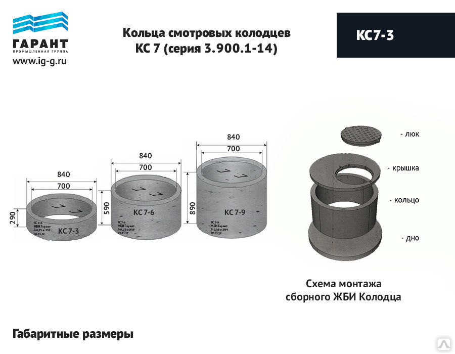 - Таблица размеров колодезного кольца согласно ГОСТ