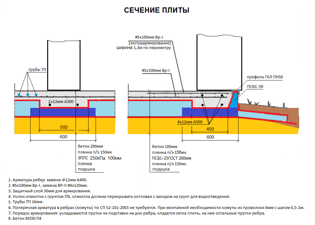 Учет всех этих параметров влияет и на расчет толщины плитного фундамента.