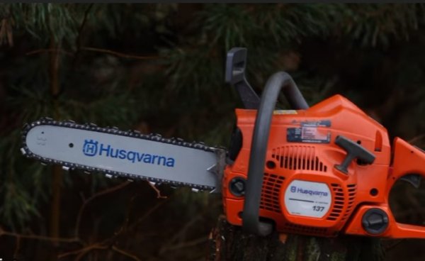 - Пила с глушителем, заводская настройка карбюратора Husqvarna.