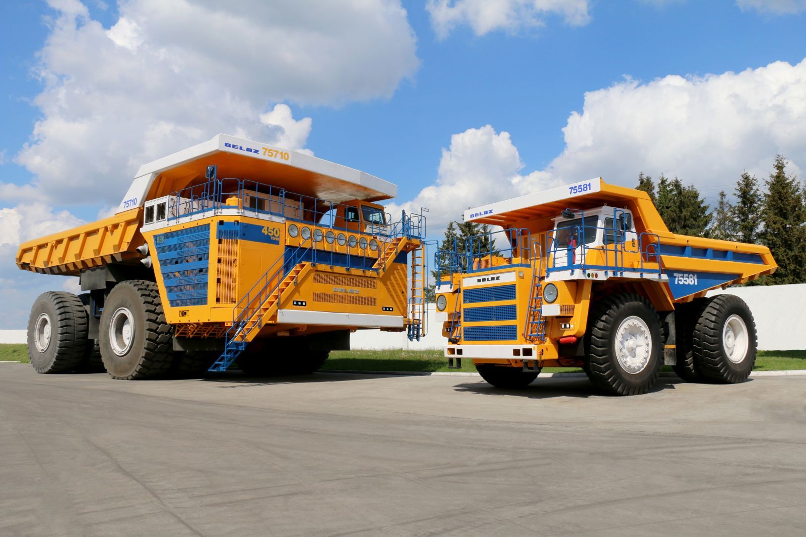 БелАЗ выпускает транспортные средства для горнодобывающей промышленности. Модель 75600 БелАЗ имеет грузоподъемность 352 тонны. Максимальный вес брутто составляет 617 тонн. Длина: 14,9 метров, Ширина: 9,6 метров, Высота: 7,47 метров.