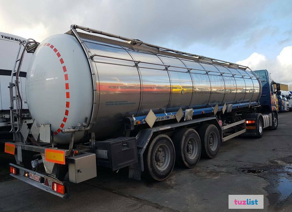 Это классический бензовоз, предназначенный для перевозки горючих жидкостей средней плотности на любые расстояния.