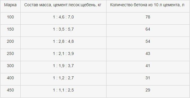 Таблица расхода цемента и песка для приготовления 1 м3 цементно-песчаной стяжки
