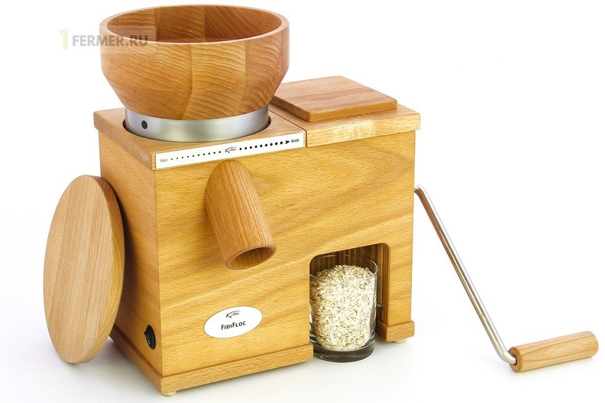 Є нової конструкції машини, з якою ви можете приготувати за лічені хвилини борошно і відмінні свіжі пластівці із зернових культур. Борошно чудово підходить для випікання хліба, тістечок, бісквітів в домашніх умовах, а також ідеальний варіант для солоду. Це відмінна млин для любителів домашнього пивоваріння.