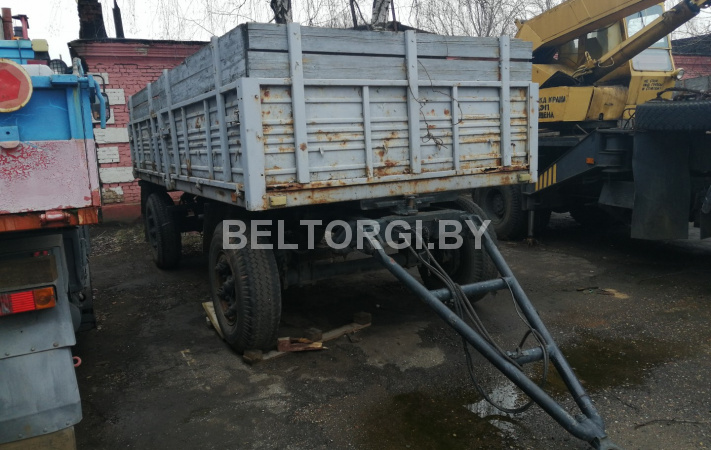 На металлической платформе находится деревянный настил. Все борта унифицированы с бортами автомобиля МАЗ и являются откидными. Также прицеп оснащен дугами и тентом, которые можно легко демонтировать.