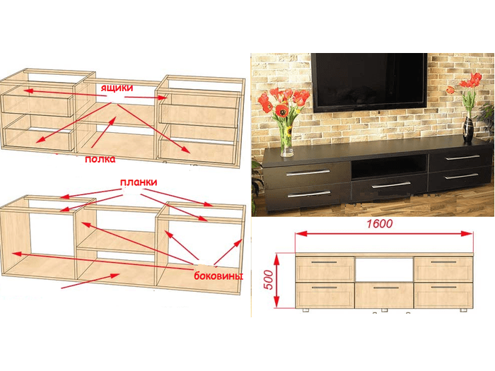 Как сделать тумбу под телевизор своими руками в современном, чертежи и схемы сборки из дерева
