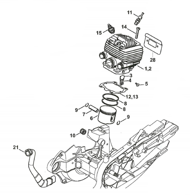 Стартер служит для запуска двигателя бензопилы путем прокручивания коленчатого вала.