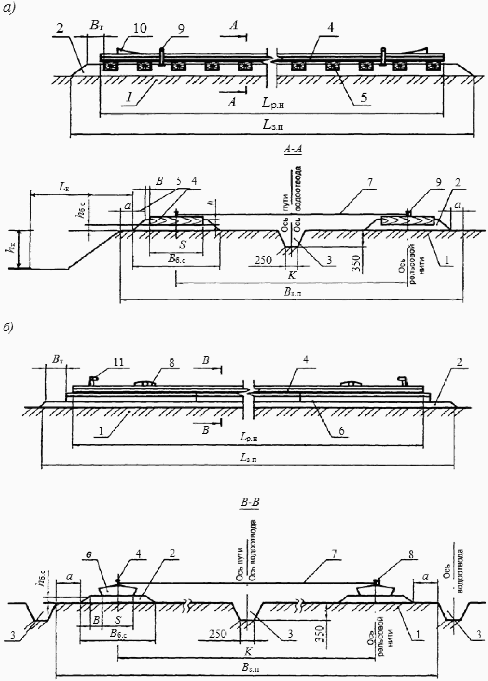 Конструкция шпалолежня (рис. 88) представляет собой монолитную балку с поперечными балочками длиной по 1,3 м каждая.