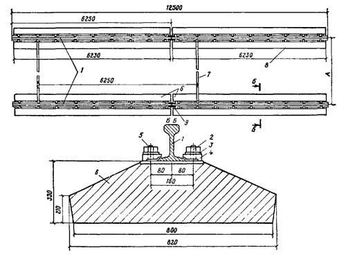 Существующие конструкции подкрановых путей на деревянных шпалах не только требуют больших затрат времени и ручного труда, расхода материалов, используемых обычно однократно, но и не обеспечивают необходимой точности укладки и нормальной работы отдельных узлов, а также устойчивости крана в процессе работы.