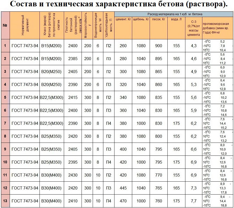 Чем выше марка по прочности, тем выше и остальные коэффициенты, такие как морозостойкость (F) и водонепроницаемость (W). Ниже представлена таблица соответствия этих характеристик:| Марка бетона (М) | Класс бетона (В) | Морозостойкость (F) | Водонепроницаемость (W) |