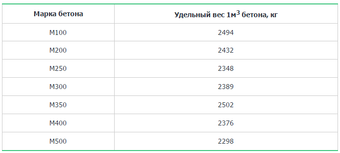 Для лучшего ориентирования ниже представлена таблица веса бетона (в данной таблице указаны приблизительные значения):