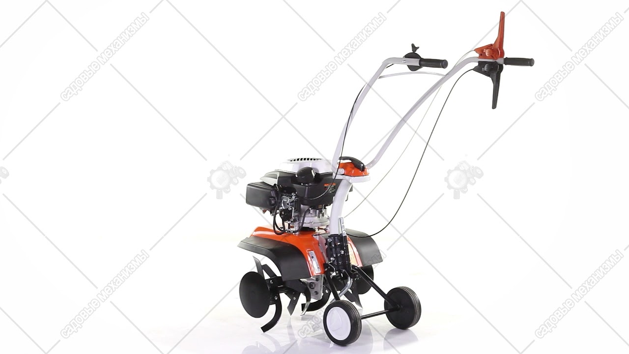 Культиватор не оснащен собственным приводом, поэтому он приводится в движение с помощью физической силы. Инструмент оснащен задним приводом. Фрезы вращаются автоматически.